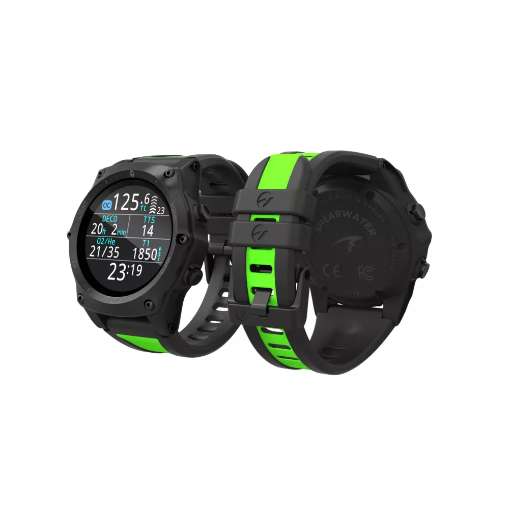 The Shearwater Research Teric Dual Colour Strap Kit is a replacement 22 mm wide interchangeable silicone band for your Shearwater Teric wrist watch dive computer. Choose a dual colour combination to fit your personal style. It's easy to switch, and always secure. Changing the strap requires using a pair of hex key screwdrivers to remove and replace the two pins holding the two-piece strap to the body. It's easy to switch, Shearwater includes in the Teric computer case a pair of the hex key screwdriver tools required to make the change.