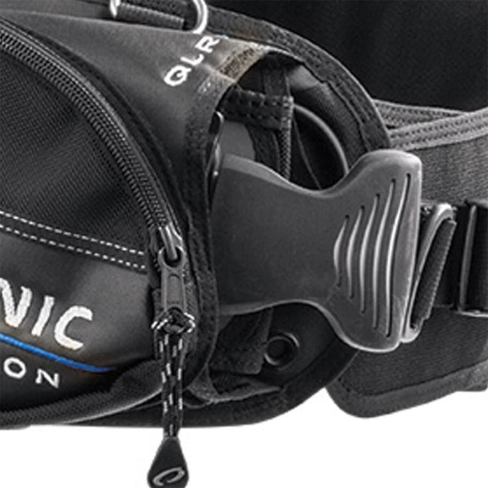 The Excursion's streamlined harness with reinforced contoured shoulders, padded back pack with lumbar support and adjustable position sternum strap is designed for maximum comfort. The BCD comes with Oceanic's QLR3 integrated weight system and trim pockets with the QLR holding up to 26 lbs. (12kg) of hard or soft weight and the trim pockets having a capacity of 10 lbs. (5 kg). The BCD has generous zippered utility pockets for all of your accessory needs. Pre-Bent welded stainless-steel D-rings, integrated instrument retractor mount (retractor not included, see SKU: OCNBCR) and Spinner Knife (see SKU: OCNKSP) mounting grommets.