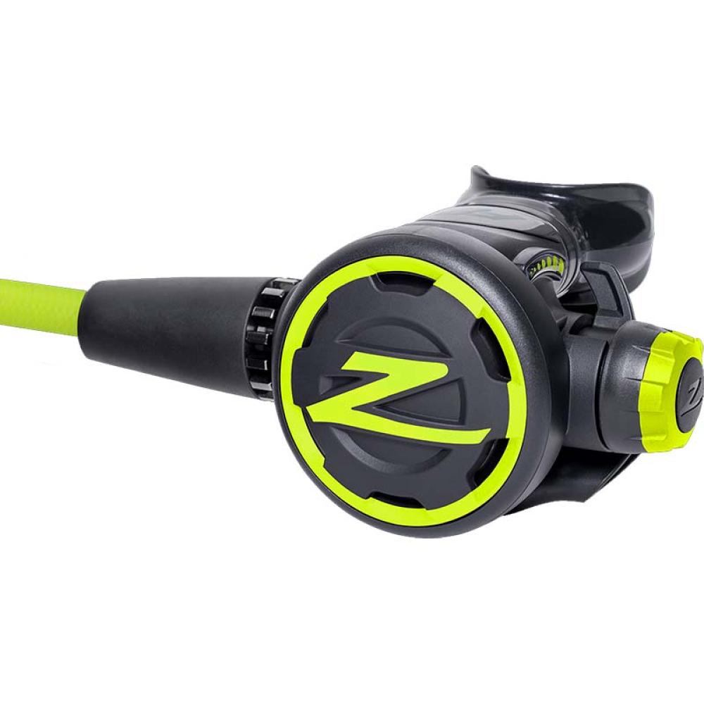 Lightweight high-performance second stage with a free-flow control. Also includes a heat sink and has and adjustable cracking pressure. This is very important in Octopus regulators, since the Pre-Dive position is much more resistant to Venturi-Free-flows that can sometimes result in significant air-loss during a dive. The F8 Octopus comes with a Yellow cover and 36? hose.