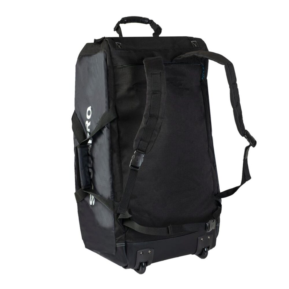 - Backpack system plus top handle with reinforced “off-road” skate-style wheels provide multiple transport options.
