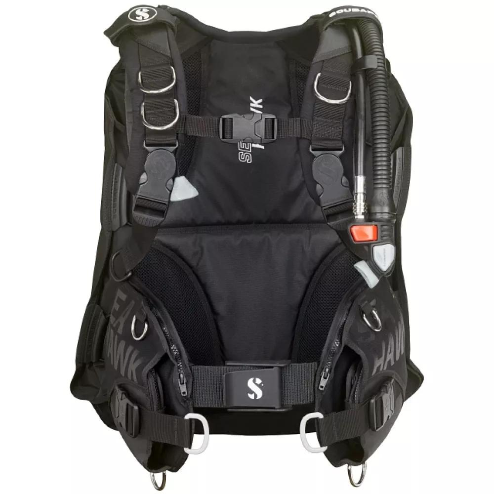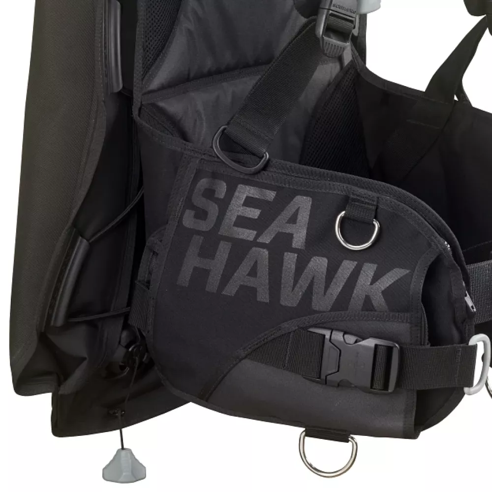 This popular all-purpose BCD features an ergonomic shoulder design with rotating buckles and a soft, reinforced backpack – this makes the Seahawk 2 much lighter than its predecessor, and extremely easy to fold and pack. The stainless steel Super Cinch tank band is positioned a bit lower than before, and an additional Velcro strap has been added to secure the tank when diving. Other features include a 50mm waist strap with lightweight cam buckle, redesigned cargo pockets and a range of airway and valve fittings. Offering a streamlined shape yet substantial buoyant lift when needed, the Seahawk 2 is the perfect choice for divers looking for freedom of movement, comfort and stability when cruising the depths.