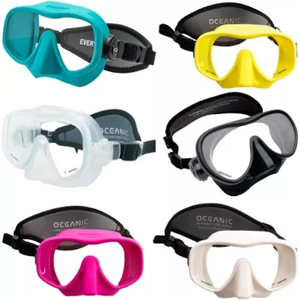 Oceanic Shadow Mask features a sleek 100% liquid silicone skirt that attaches directly to the tempered glass lens. No mask frame means the Shadow Mask offers an incredible field of vision and packs flat.