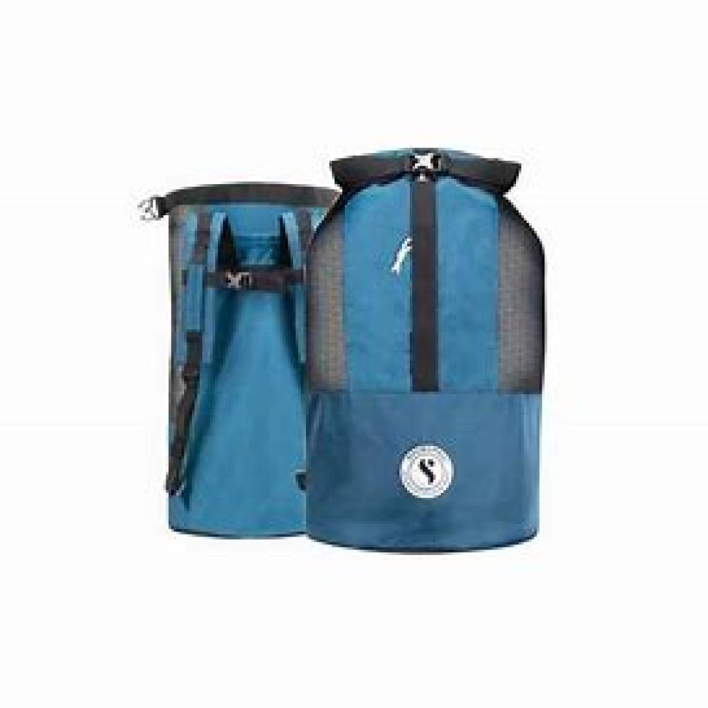 - The perfect carryall for snorkeling or dive gear.Made with a combination of mesh material and new denim blue color fabric with a black inside lining sporting the SCUBAPRO logo.